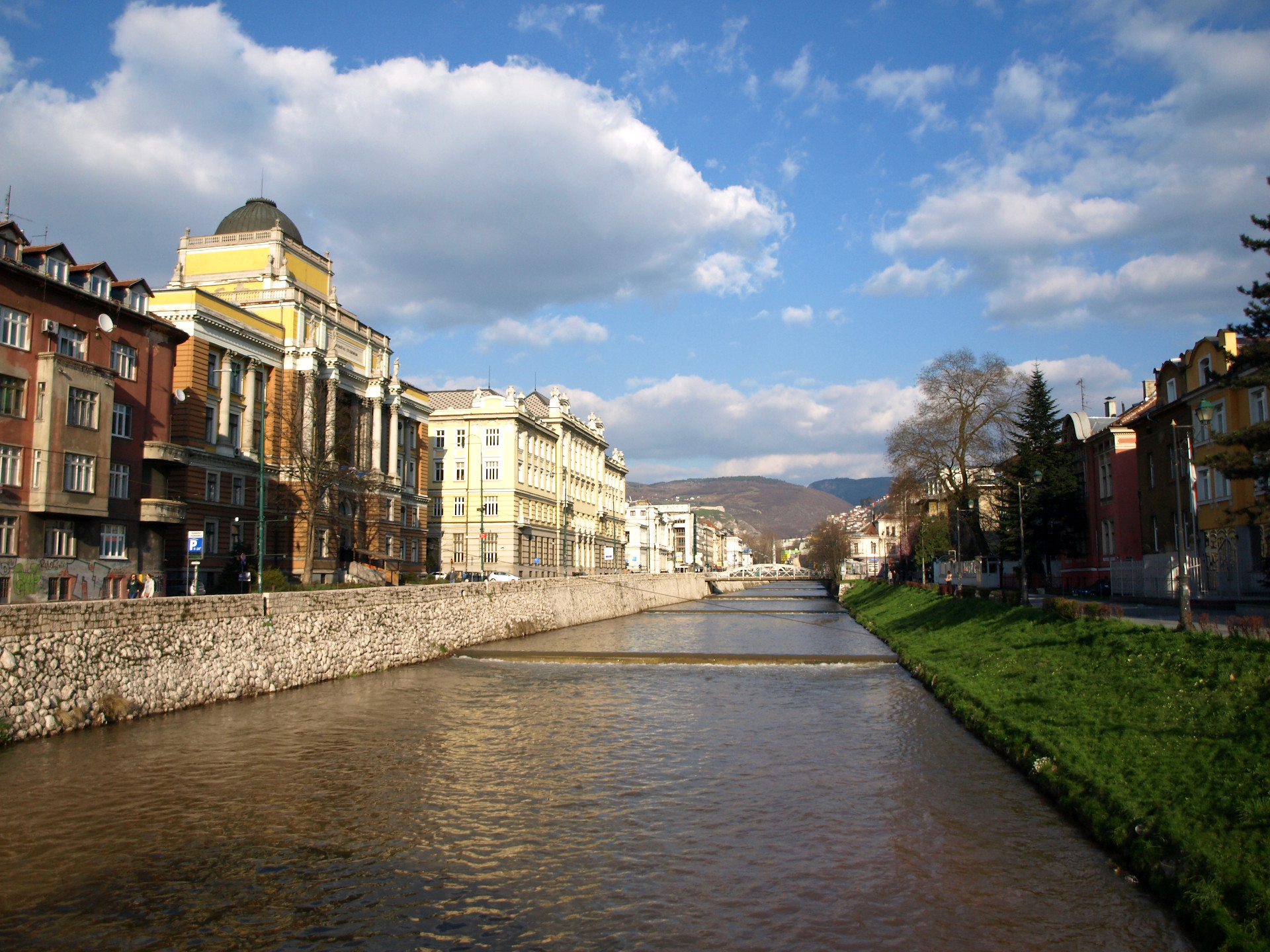 Was: Lateinerbrücke (Bj. 1565, Ort des Attentats vom 28. Juni 1914), Museum „Sarajevo 1878-1918“, Altes Rathaus (Bj. 1892-1894), aschkenasische Synagoge (Bj. 1902), Hauptgebäude der Universität (Bj. 1850-er), Privredna Bank (Bj. 1913), Nationaltheater (Bj. 1897-1898 bzw. 1919-1921), Akademie der Künste (Bj. 1898-1899 bzw. 1911), Hauptpost (Bj. 1911-1913), Šeher Ćehaja Brücke (Bj. 1585-1586)
