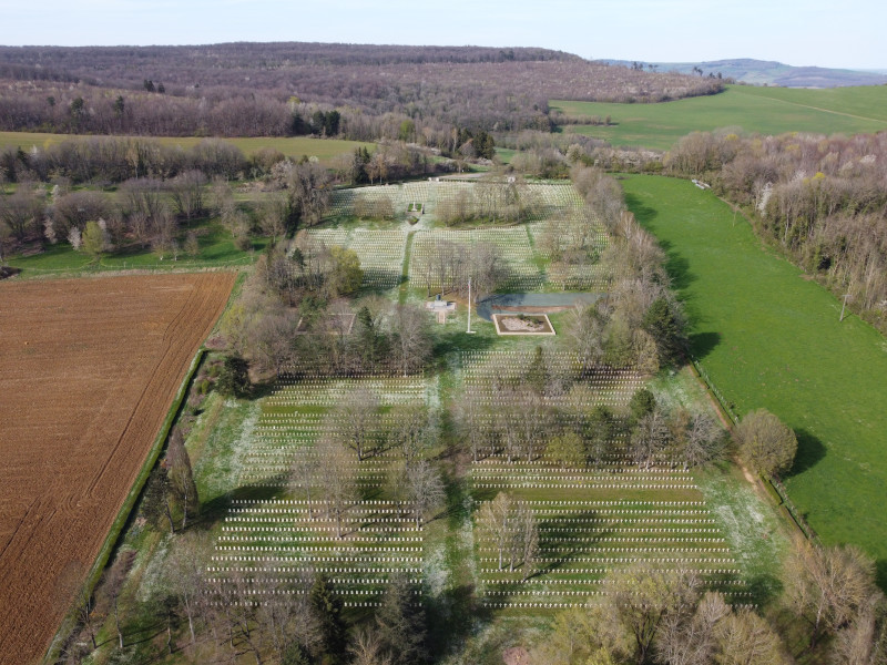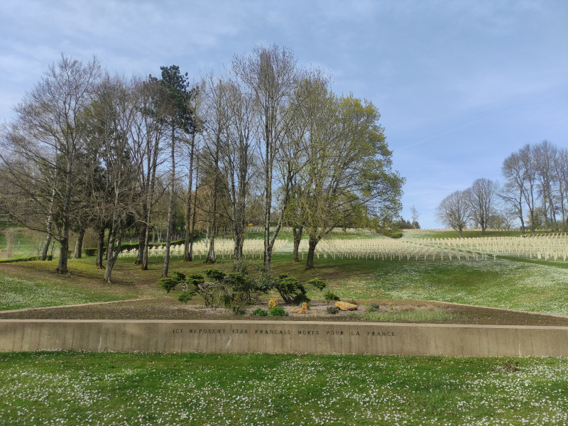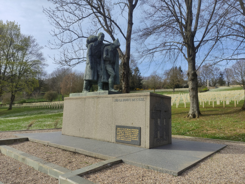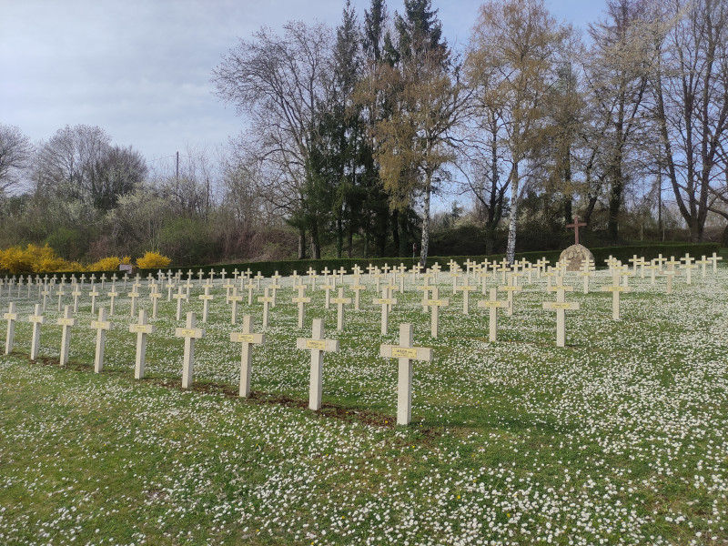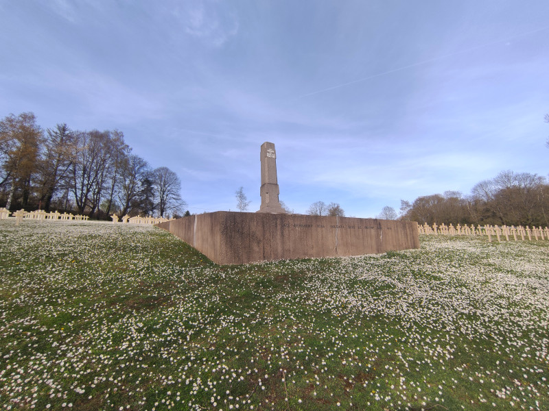 Was: französischer Soldatenfriedhof Pétant (1914-1918, 1939-1945), Denkmal für die in den Kämpfen in Bois-le-Prêtre (1914-1915) gefallenen Soldaten, Kriegsgefangenendenkmal