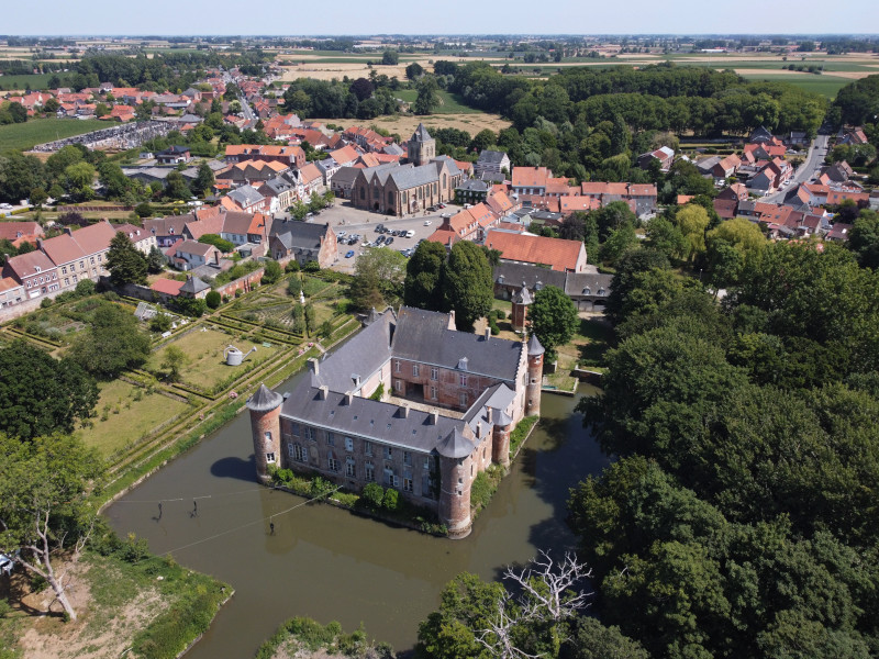 Was: Château (Schloss) d’Esquelbecq (Bj. 16.-17. Jhd.), Schlosspark (17. Jhd.)