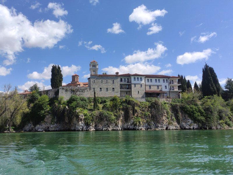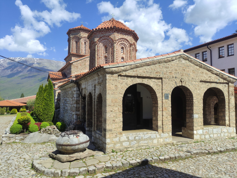 Was: Kloster Sveti Naum (9. Jhd.), Klosterkirche (Bj. 9.-14. Jhd.). Kirche St. Petka, Promenade am Ohridsee