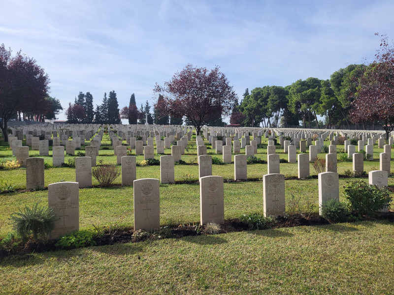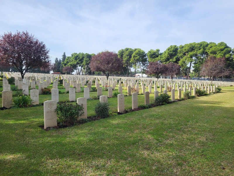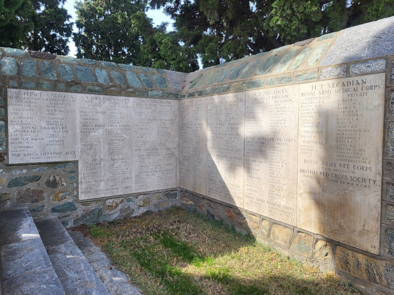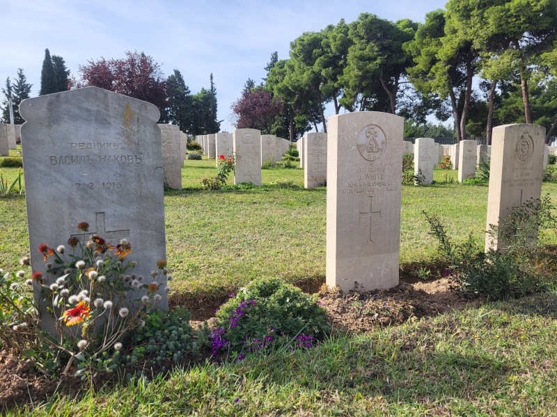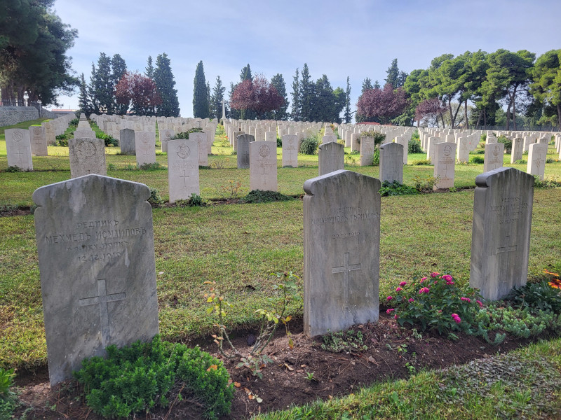 Was: CWGC Mikra British Cemetery (1915-1918), bulgarische Kriegsgräber, russische Bürgerkriegsgräber (1920), Mikra Memorial (für die versunkenen britischen Schiffe „Marquette“, „Ivernia“, „Arcadian“, „Britannic“, „Princess Alberta“, 1915-1917)