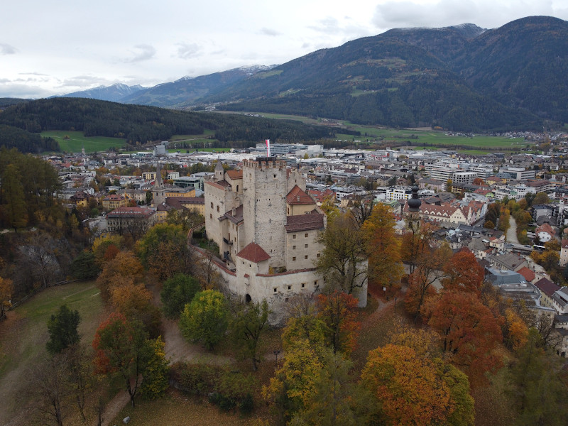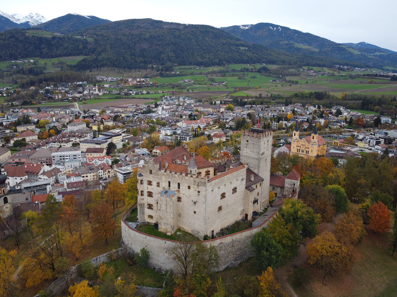 Was: Schloss Bruneck (Bj. 1251-1288 bzw. 14.-16. Jhd.), Schlosspark, Rainkirche (Bj. 1340 bzw. 17. Jhd., 1723)