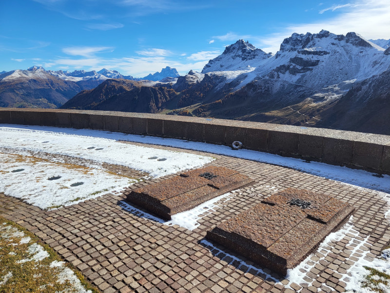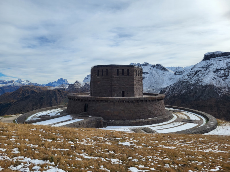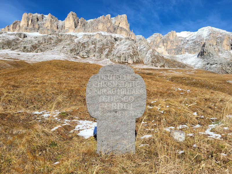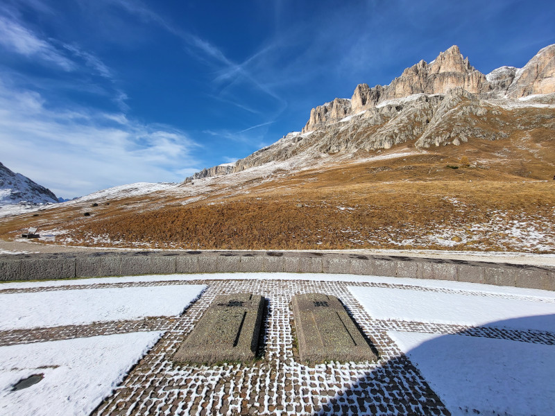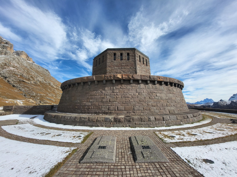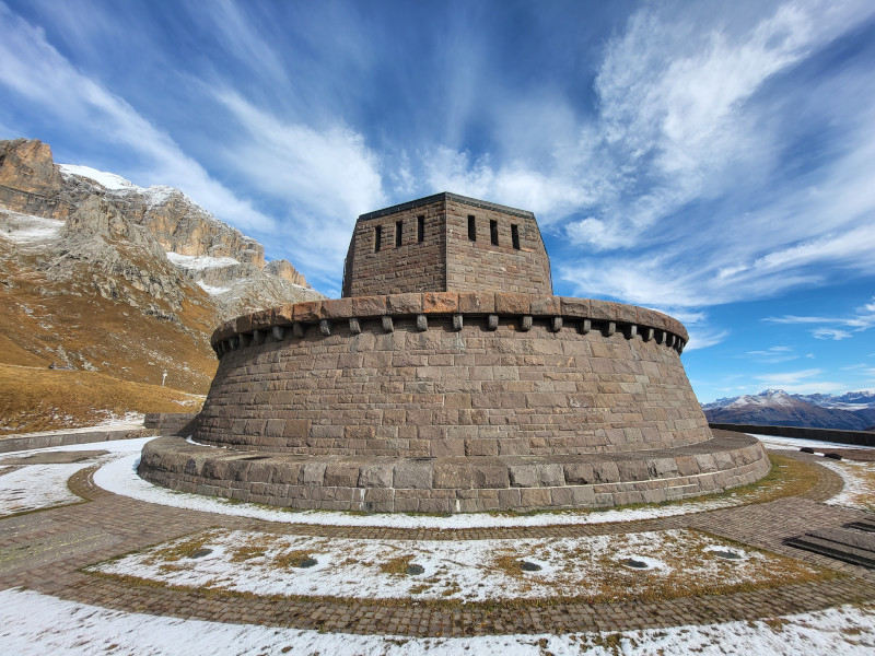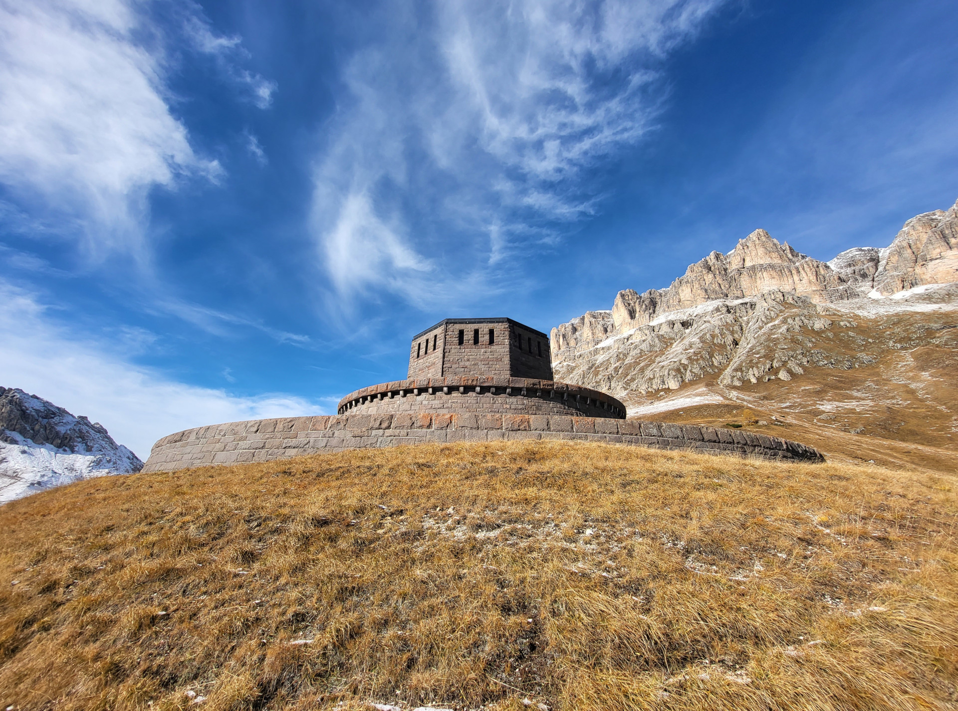 Was: deutsche Kriegsgräberstätte („Totenburg“) Pordoi (1915-1918, 1939-1945), Gebirgspass Passo Pordoi in den Südtiroler Dolomiten