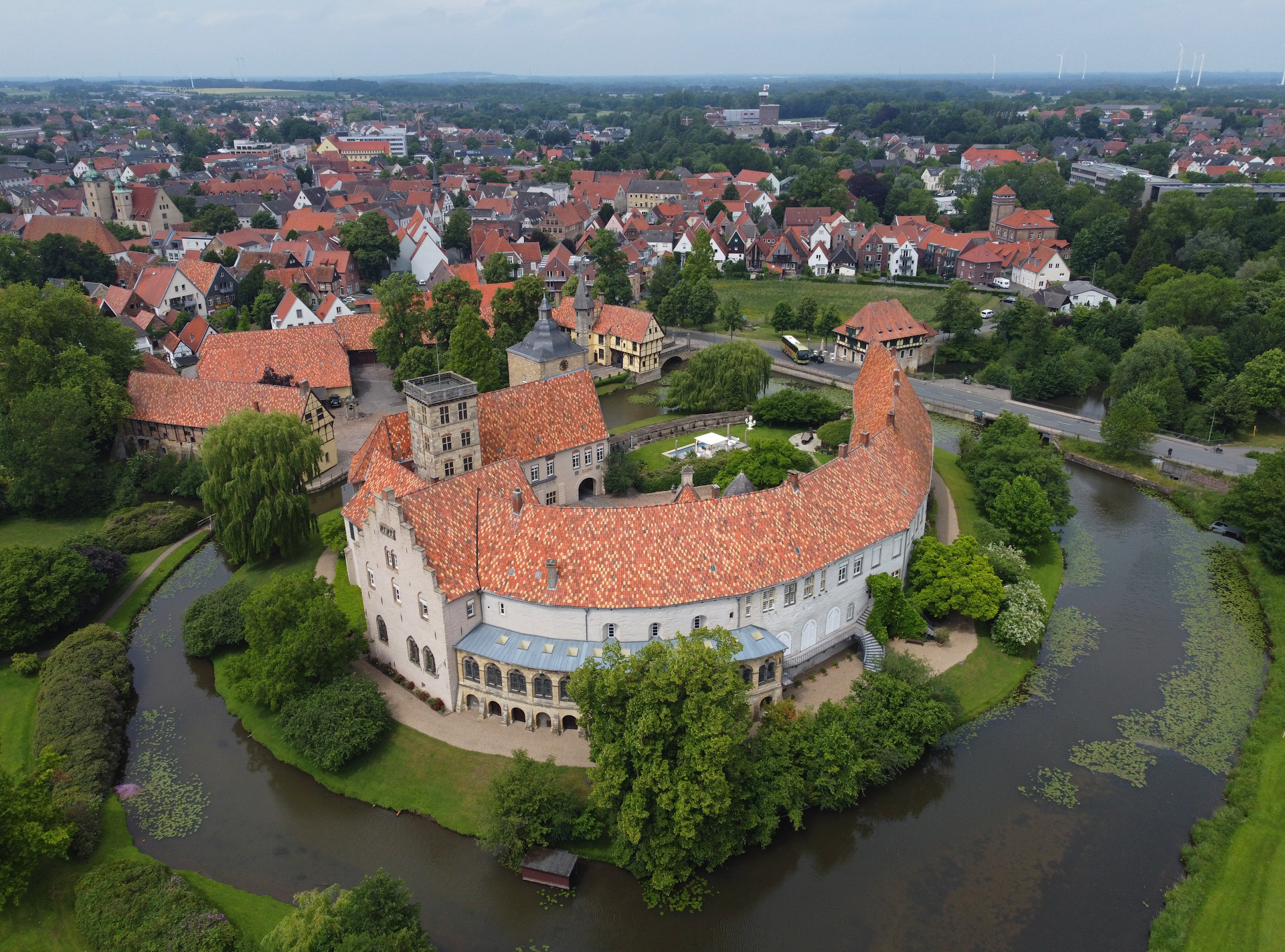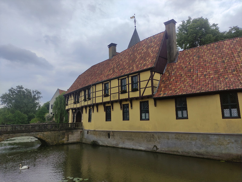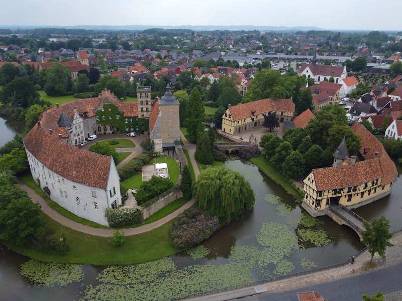 Was: Wasserschloss Burgsteinfurt (Bj. 12. bzw. 18. Jhd.), Schlosspark, Kriegerdenkmal, Arnoldus-Denkmal, Bismarck-Denkmal