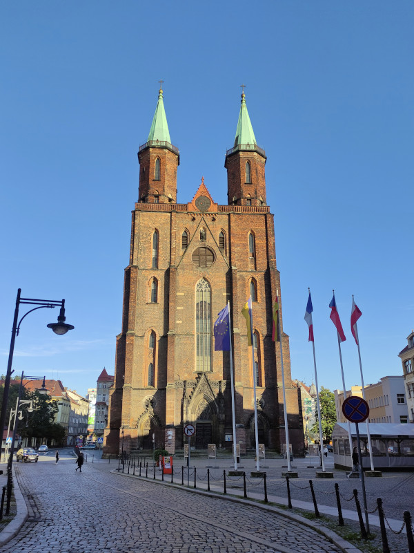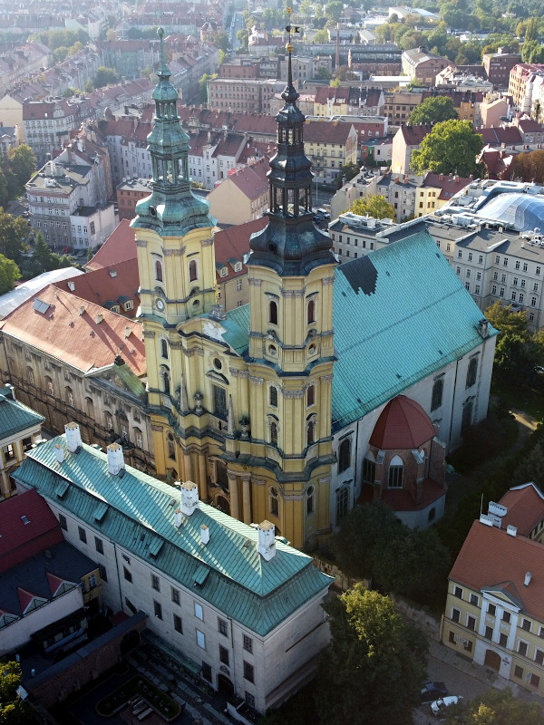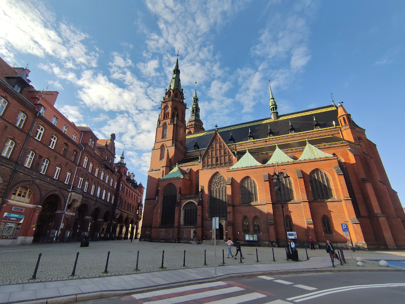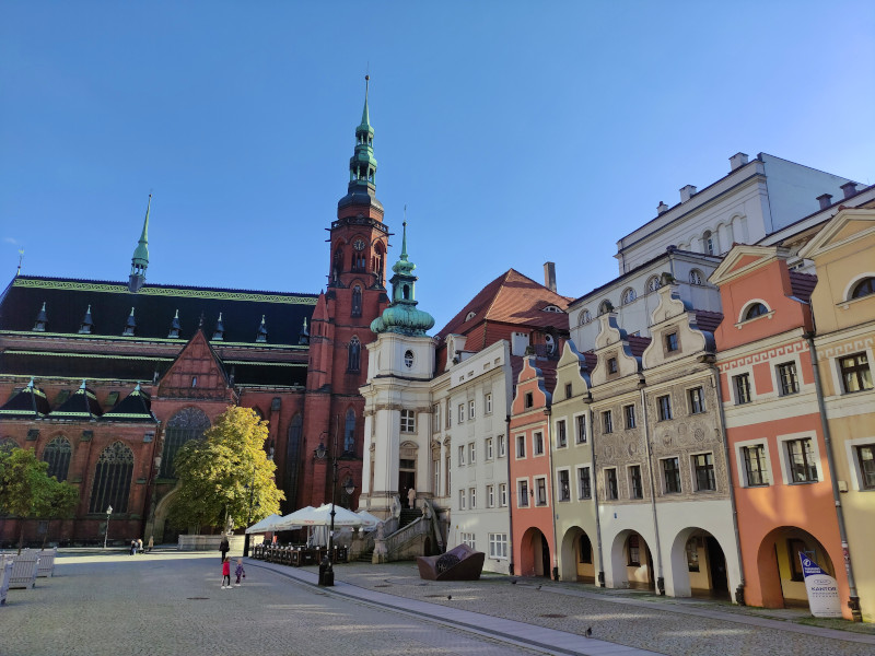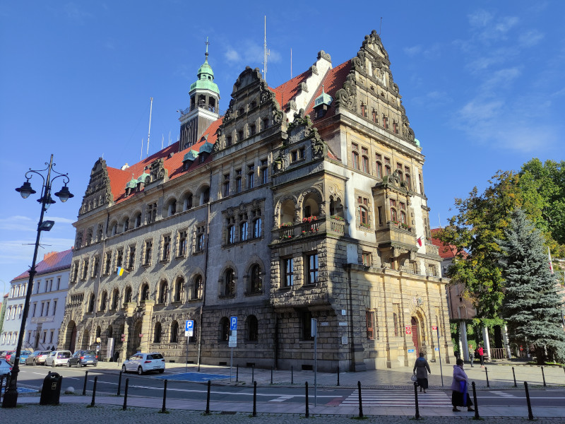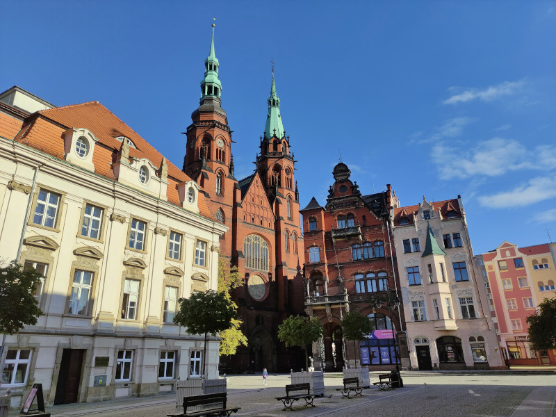 Was: Marktplatz (Rynek) und die historische Bebauung, altes Rathaus (Bj. 1737-1741), neues Rathaus (Bj. 1902-1906), Kathedrale St. Peter und Paul (Bj. 1329-1390 bzw. 1892-1894), Martinskirche (Bj. 1813), Liebfrauenkirche (Bj. 1386), Johanneskirche (1720), Schlafender Löwe, Wincenty-Witos-Denkmal, Bishofspalast, Denkmal für die Schlacht bei Liegnitz von 1241