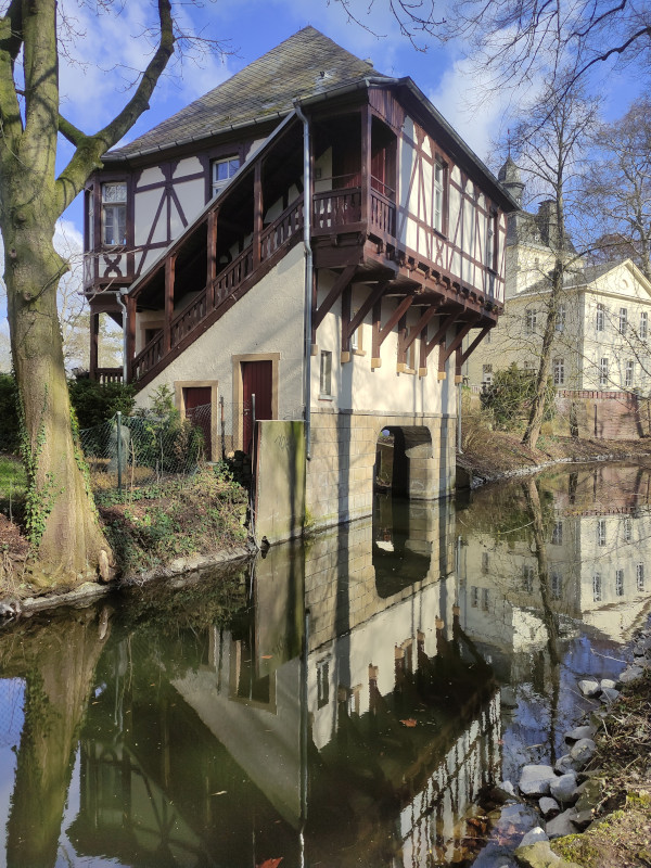 Was: Schloss Eller (Bj. 1824-1826), Wirtschaftsgebäude und Bootshaus (Bj. 1902-1909), Schlosspark